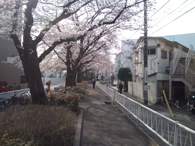 会社の前の桜並木道はちょうど満開くらいです。